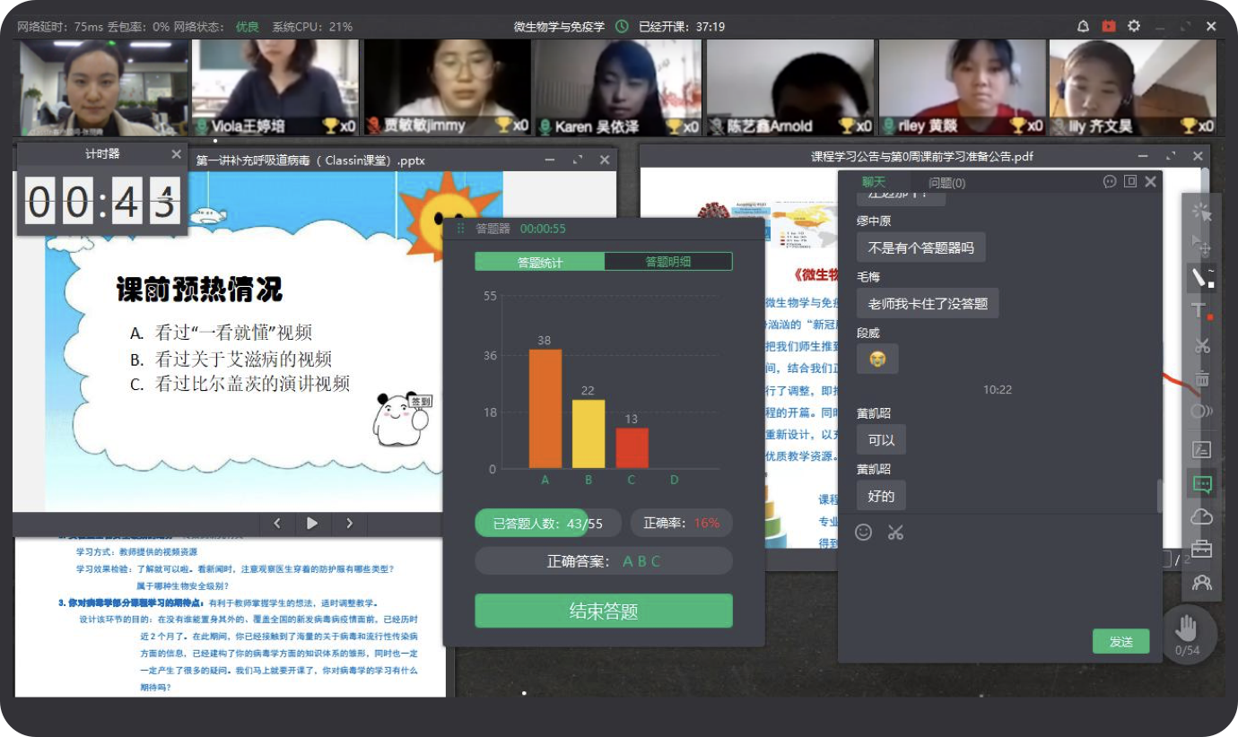 遍布全球各地的知名企业家通过线上方式和学生交流分享和互动,实现学以致用。