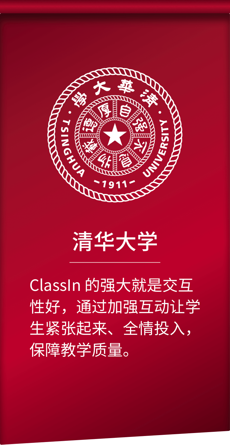 北京大学线上学习空间:2613门本科生课程 和1824门研究生课程,从通识课、研讨课、 选修课等各类教学形态,80%的老师选择 ClassIn 直播的教学方式。在特色选修课《全 球同上一堂课》项目中,北京大学使用 ClassIn 汇集全球名师和30多个国家和地区的 学生共同上课,实现让不同地区的学生相互 交流、共同学习、共同促进。