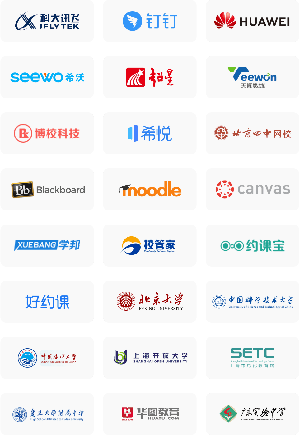 ClassIn 为几大通用LMS学习平台提供了LTI 插件,无须开发,15分钟配置您的学校系统的直播互动功能,使您的教学空间更高效、一体化、可扩展、更安全。